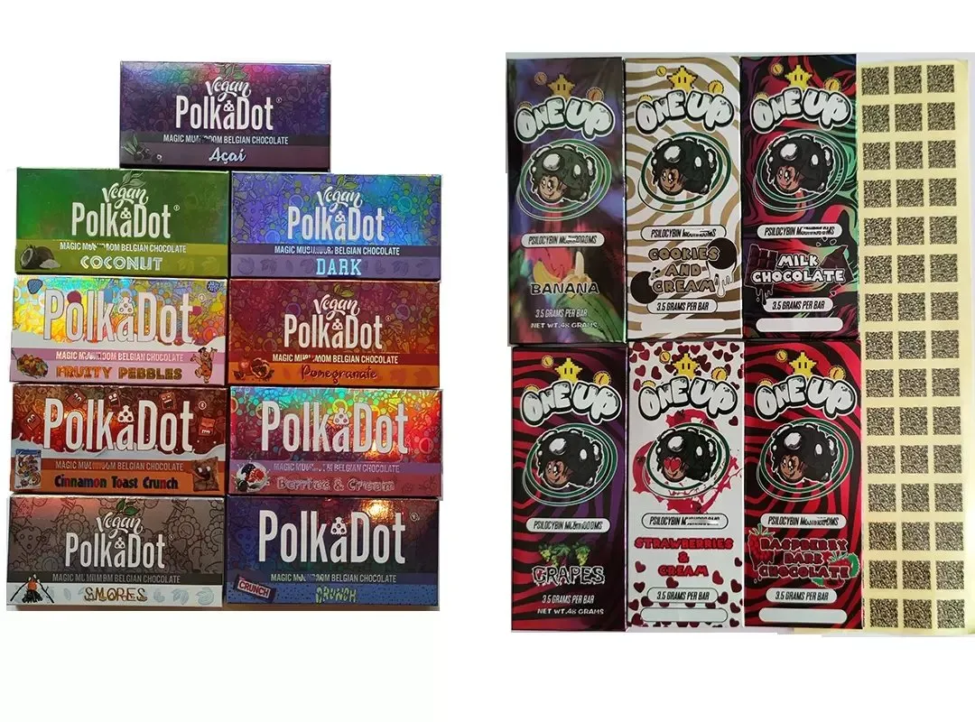 Personalize your packaging with vibrant colors, psychedelic-inspired artwork, and premium finishes like foil stamping, embossing, or spot UV to reflect the unique essence of your Polk mushroom chocolate bars. Add your logo, nutritional facts, and brand story to create a memorable unboxing experience that boosts brand recognition and customer loyalty. Our wholesale options offer low minimum order quantities (MOQs) and free design support for a seamless customization process.