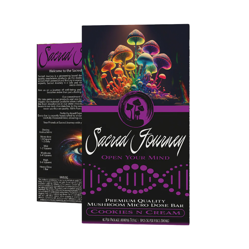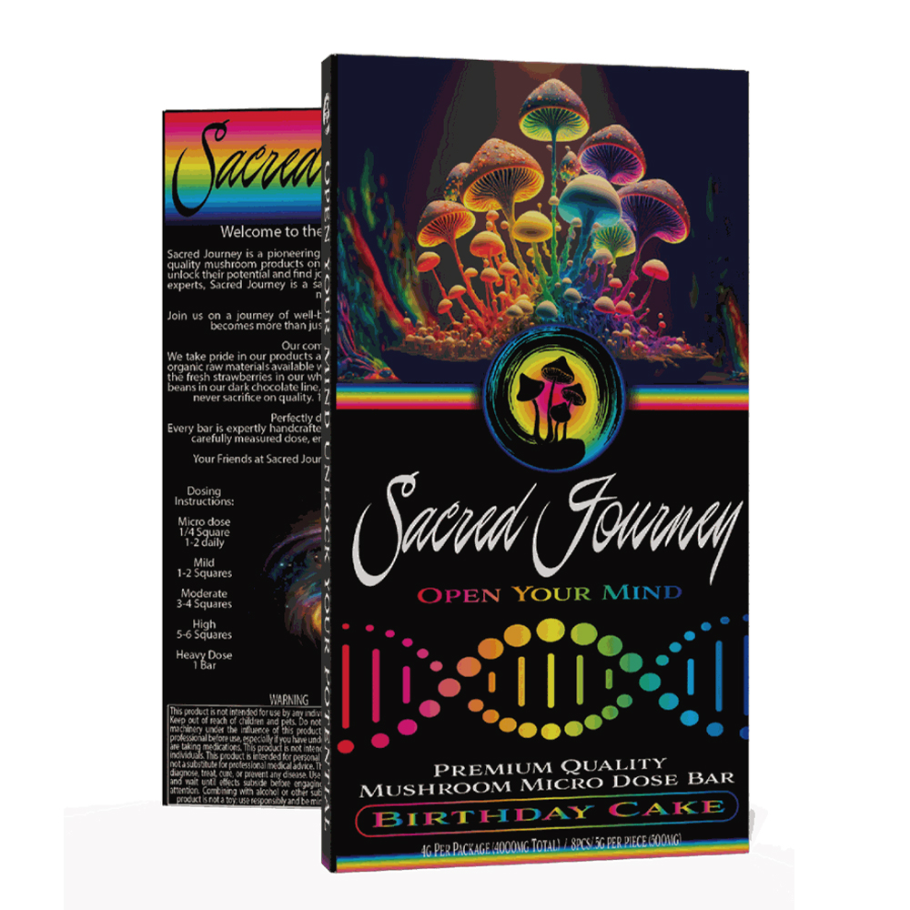 Take your mushroom chocolate bar brand to the next level with our Custom Psychedelic Chocolate BoxΒ β designed to mesmerize your customers while protecting and enhancing your product. Whether you’re selling Sacred Journey, One-Up, or other psilocybin-inspired chocolate bars, our packaging ensures an immersive unboxing experience with luxurious visuals, durable structure, and full customization.